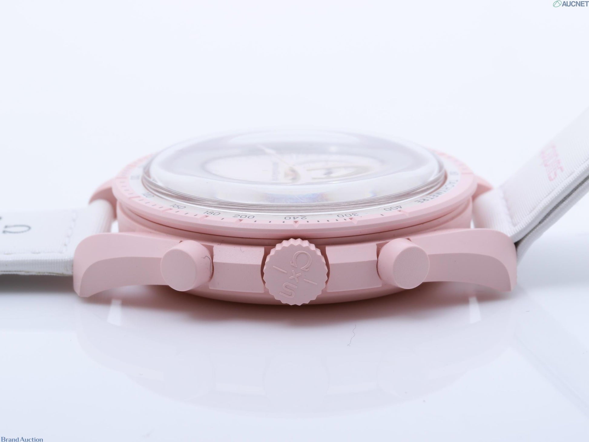 Step into cosmic elegance with the Swatch X Omega Moonswatch – Mission to Venus, a collaboration that merges Swatch’s playful design with Omega’s spacefaring legacy. Inspired by the planet Venus, this chronograph exudes feminine charm with its pastel pink case and matching dial details.